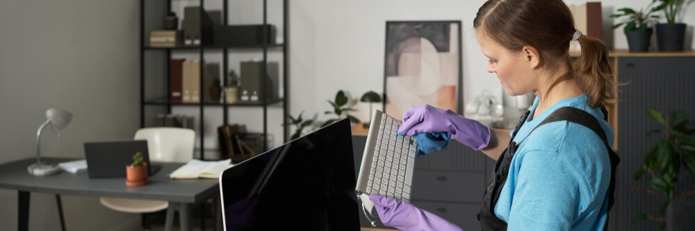 Limpiamos mesas, mobiliario, salas de reuniones y zonas de uso diario prestando especial cuidado a equipos informáticos. Realizamos limpieza en seco y desinfección segura de pantallas, teclados y teléfonos. Además, la gestión de mesas, documentos y papeleras se hace con discreción, confidencialidad y cumplimiento con la LOPD. Nuestro servicio de limpieza de despachos mantiene la oficina en orden sin interferir en la actividad.